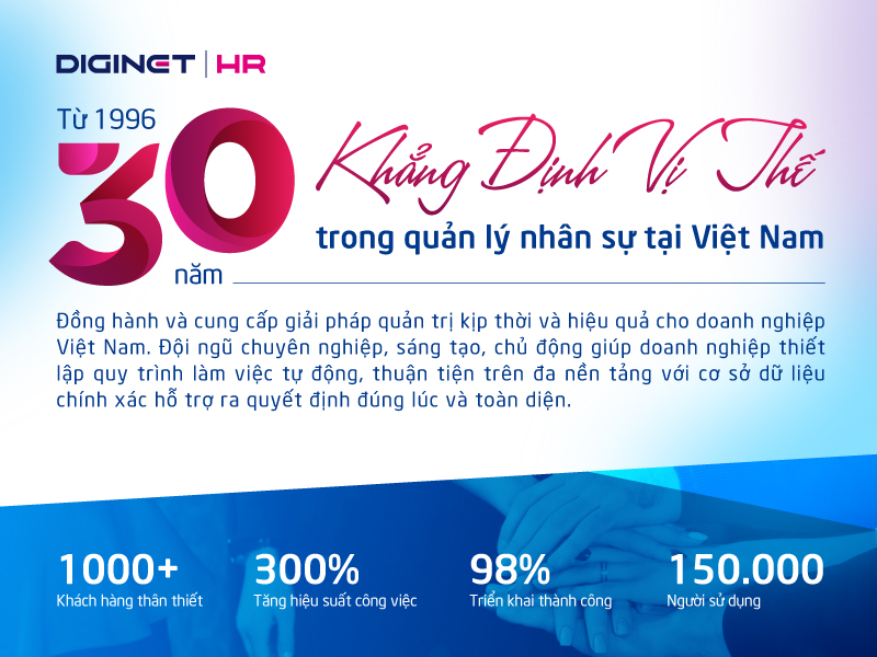 DIGINET HR là thành quả được đúc kết sau 30 năm hoạt động với đội ngũ nhân sự chuyên môn cao; tập trung chủ yếu vào xây dựng hệ thống quản lý tự động cho những doanh nghiệp có quy trình phức tạp với quy mô vừa và lớn, hoạt động trong các ngành/ lĩnh vực như sản xuất, bất động sản, chế biến, thương mại, du lịch, dược phẩm v.v.